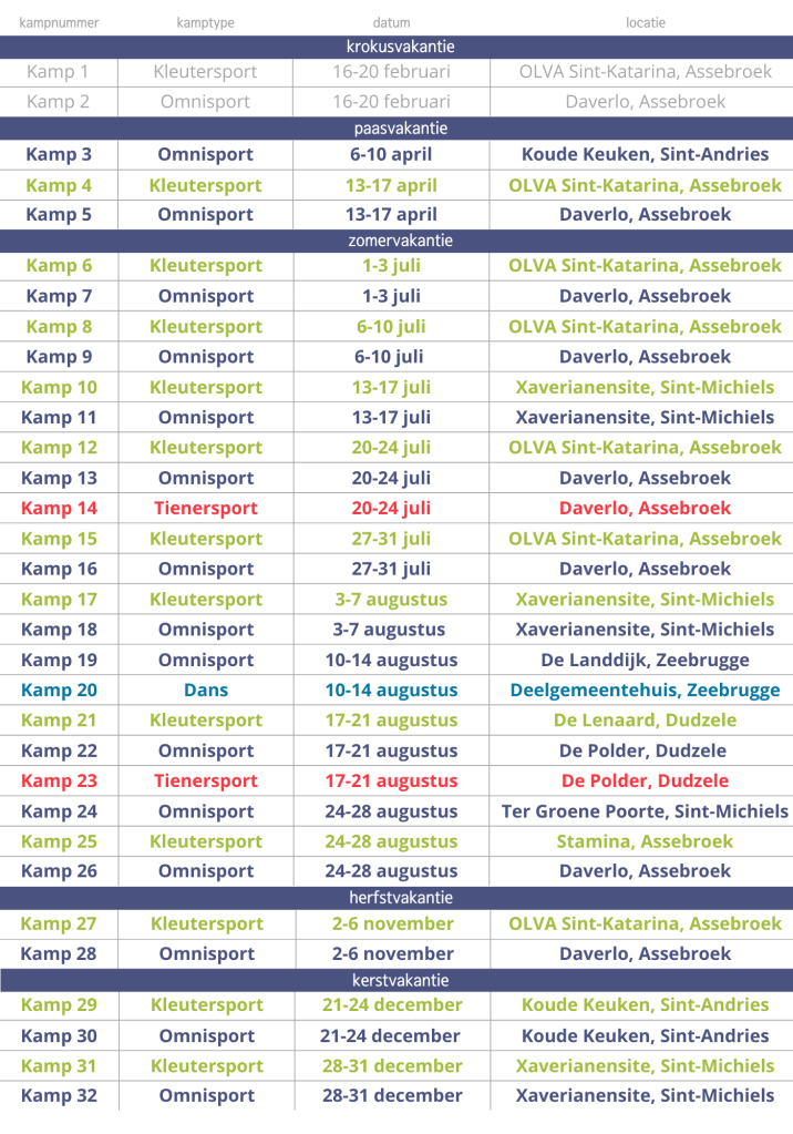 Het aanbod sportkampen voor 2026 werd op 16 december 2025 gecommuniceerd.