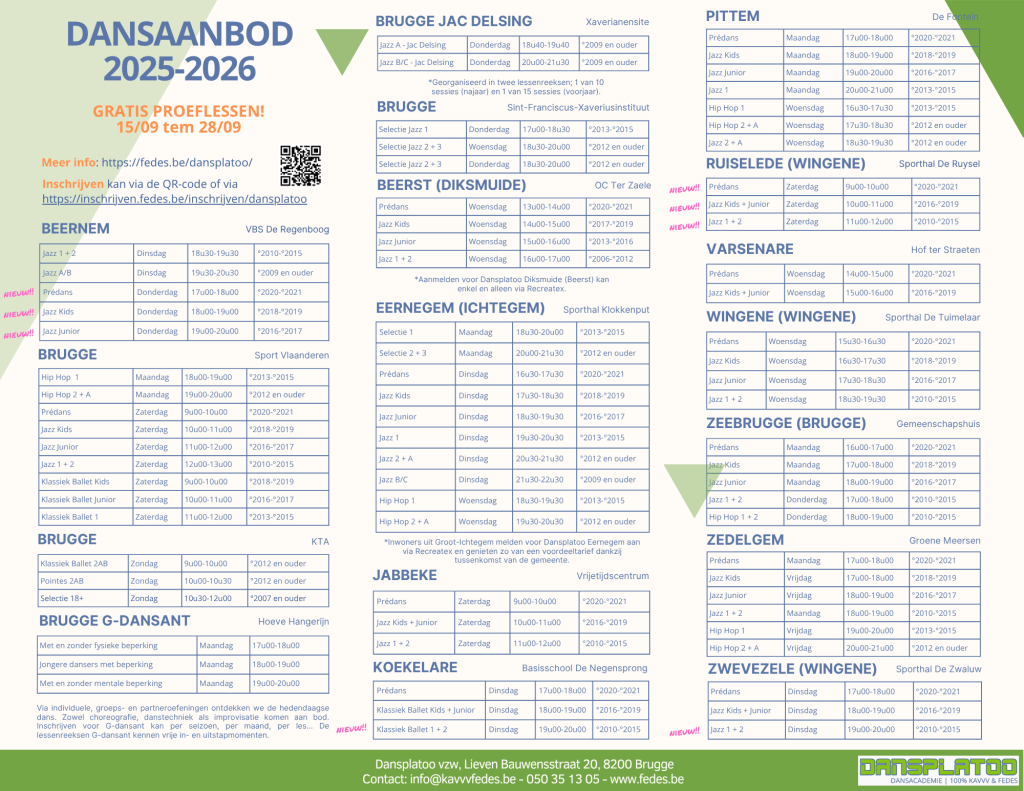 *Elk dansseizoen ondergaat het aanbod kleine wijzigingen. Het Dansplatoo-aanbod wijzigt elk dansseizoen, afhankelijk van het aantal deelnemers en nieuwe initiatieven.
