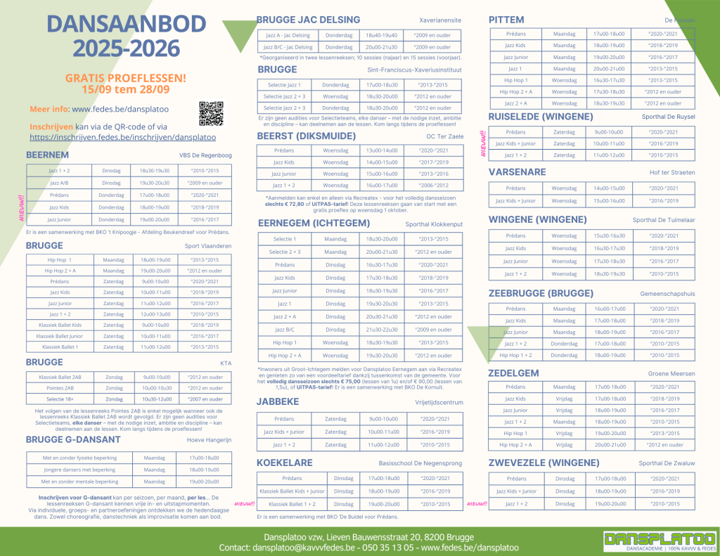 *Elk dansseizoen ondergaat het aanbod kleine wijzigingen. Het Dansplatoo-aanbod wijzigt elk dansseizoen, afhankelijk van het aantal deelnemers en nieuwe initiatieven.