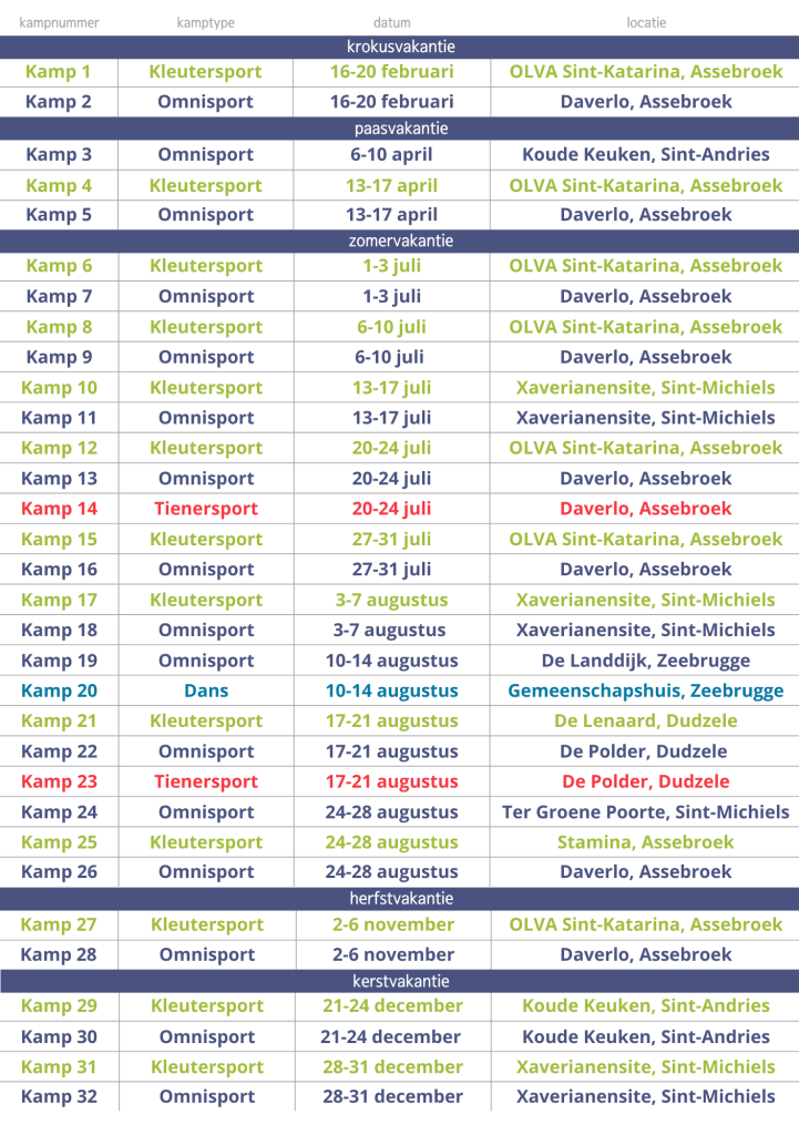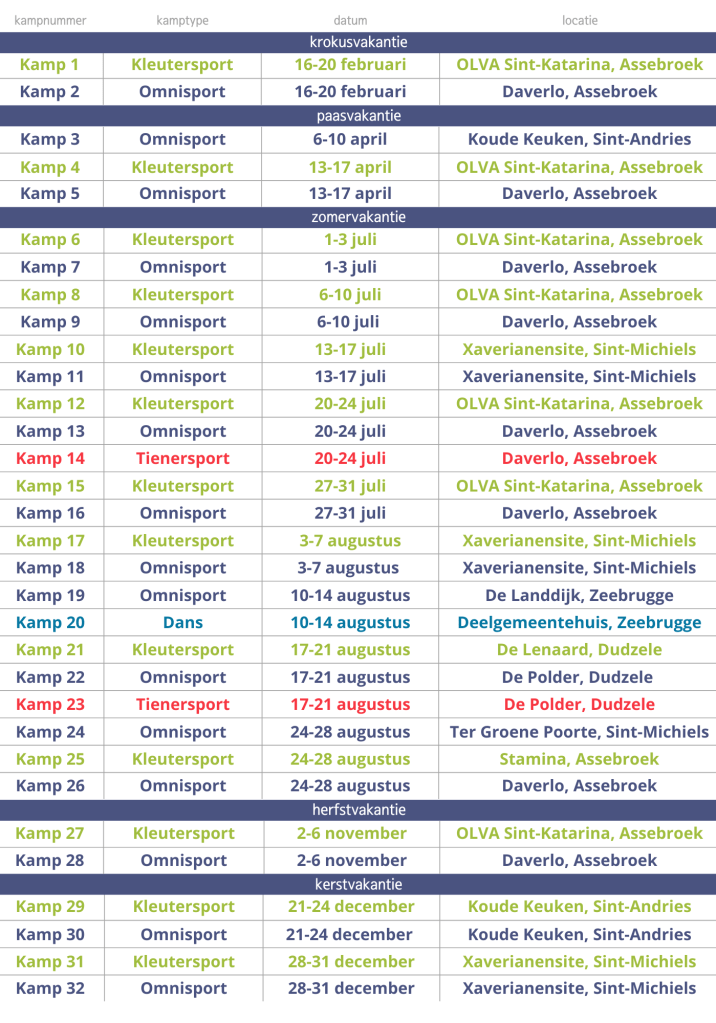 Het aanbod sportkampen voor 2026 werd op 16 december 2025 gecommuniceerd.
