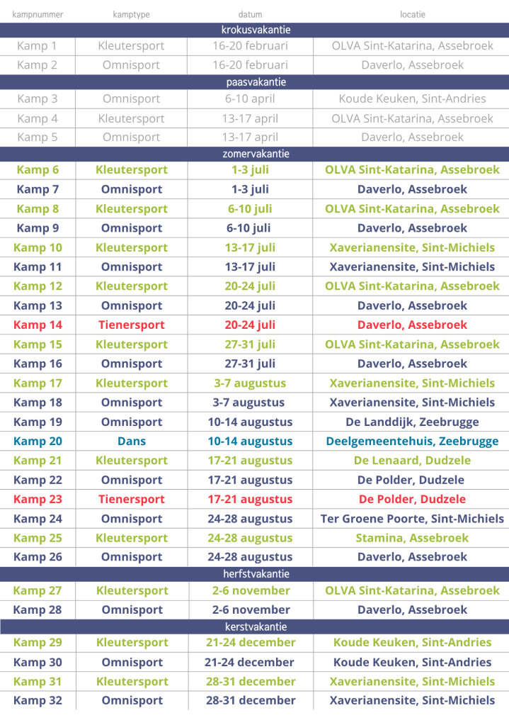 Het aanbod sportkampen voor 2026 werd op 16 december 2025 gecommuniceerd.